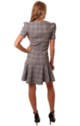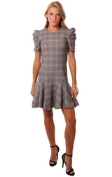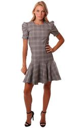 Amanda Uprichard Dresses Pouf Sleeve Flare Bottom Black White Checked Mini Dress