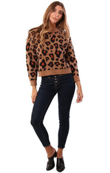 ASTR Sweaters Crew Neck Long Sleeve Leopard Print Knit Pullover Sweater