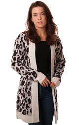 BB Dakota Cardigans Open Front Animal Print Ivory Black Knit Cardi