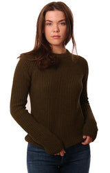 525 America Sweaters Long Sleeve Crew Neck Olive Green Shaker Stitch Pullover