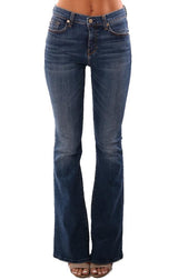 7 For All Mankind Denim High Waist Fit To Flare Long Dark Wash Jeans