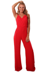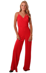 Amanda Uprichard Jumpsuits V Neck Cross Front Long Red Dressy Jumpsuit