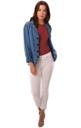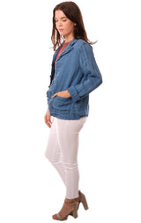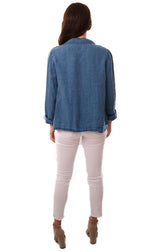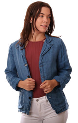 CP Shades Jackets Long Sleeve Button Front Natural Blue Linen Jacket