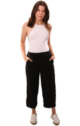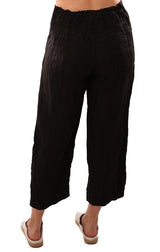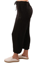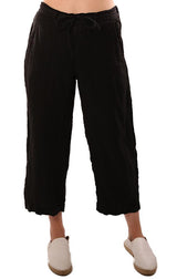 CP Shades Pants Drawstring Waist Wide Leg Crop Flowy Black Linen Pant