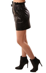 Do And Be Skirts Faux Leather High Waisted Belted Black Mini Skirt
