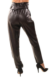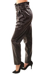 Do And Be Pants Faux Leather High Waisted Belted Cropped Ankle Dressy Black Pant