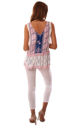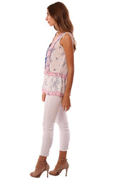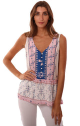 Q&A Tops Sleeveless V Neck Button Front Printed Flowy Blouse