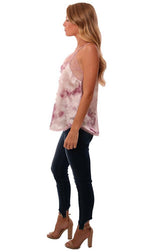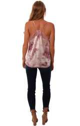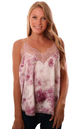Storia Tops Lace Trim Tie Dye Silky Pink Purple Cami Top