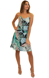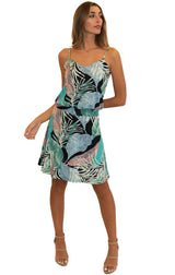 Veronica M Dresses Sleeveless Drop Waist Tropical Printed Mini Tank Dress