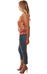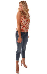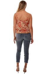 Veronica M Tops Sleeveless Cross Front V Neck Palm Printed Tank Blouse