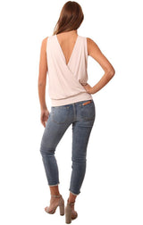 Veronica M Tops Sleeveless V Neck Cross Front Banded Ivory Tank