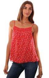 Veronica M Tops Smocked Neck Flowy Printed Red Cami Top