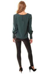 Amanda Uprichard Blouses Pearl Button Cuffs Dressy Green Top