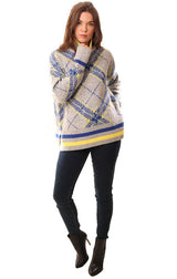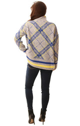 Central Park West Sweaters Turtleneck Argyle Printed Grey Blue Yellow Knit Pullover Sweater