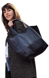 Circe Bags Shoulder Strap Genuine Leather Large Black Tote Bag