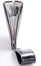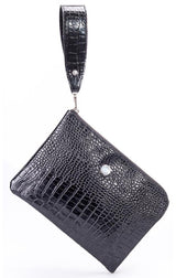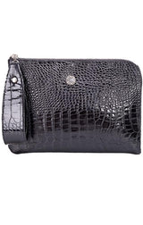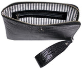 Circe Handbags Genuine Leather Crocodile Texture Zip Edge Clutch With Black Wrist Strap