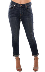 7 For All Mankind Denim Cuffed Ankle Dark Wash Boyfriend Jean