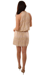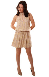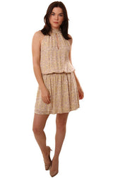 Dresses High Neck Sleeveless Smocked Waist Swiss Dot Halter Mini Dress