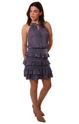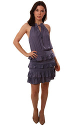 Dresses Halter Tie Neck Smocked Layered Ruffle Purple Mini Dress