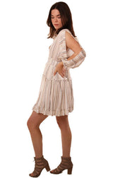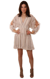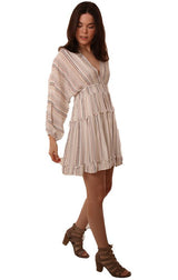 Dresses V Neck Tassel Tie Back Smocked Waist Multi Striped Mini Dress