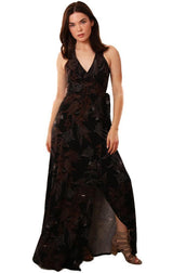 Veronica M Dresses V Neck Sleeveless Floral Printed Wrap Maxi Dress