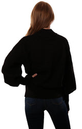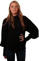 Do And Be Sweaters Bubble Sleeves Cable Knit Black Sweater