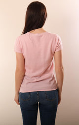 In Cashmere Sweaters Short Sleeve Soft Pink Knit Top
