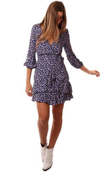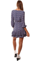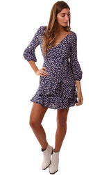 Likely Dresses V Neck Wrap Front Ruffle Floral Printed Blue Mini Dress