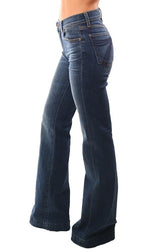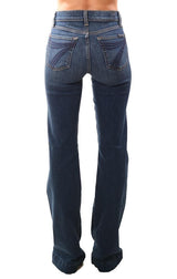 7 For All Mankind Denim High Waist Fit To Flare Long Dark Wash Jeans