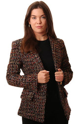 Amanda Uprichard Jackets Tweed Blazer Style Gold Button Front Chic Multi Coat