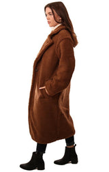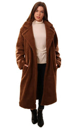 BB Dakota Coats Collared Faux Fur Long Cozy Brown Teddy Coat