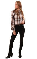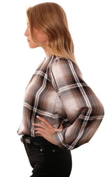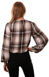 Bella Dahl Tops Long Wide Sleeve Shirred Plaid Blouse