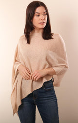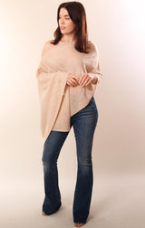Cashmere Toppers Soft Layering Knit Beige Poncho Topper