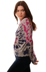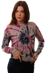 Central Park West Sweaters Crew Neck Tie Dye Knit Blue Pink Grey Pullover Sweater