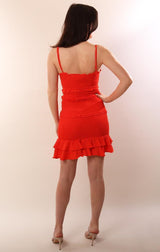 Dresses V Neck Smocked Ruffle Trim Red Mini Dress