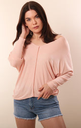 Six Fifty Dolman Sleeve V Neck Pink Top