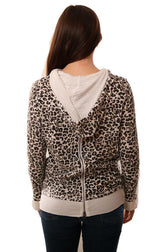 Six Fifty Hoodies Long Sleeve Zipper Back White Leopard Print Pullover