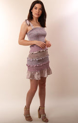 Storia Dresses Smocked Tie Strap Ruffle Floral Purple Mini Dress