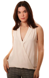 Veronica M Tops Sleeveless V Neck Collared Cross Front Ivory Top