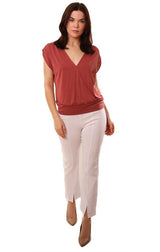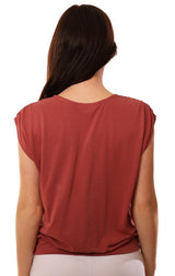 Veronica M Tops Sleeveless V Neck Cross Front Banded Rust Blouse