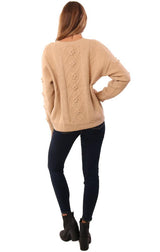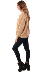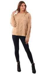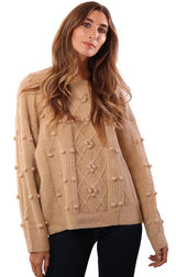POL Sweaters Long Sleeve Popcorn Stitched Beige Knit Pullover Sweater