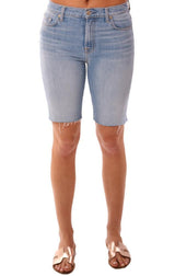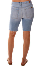 7 For All Mankind Shorts High Waist Denim Blue Cut Off Bermuda Short
