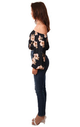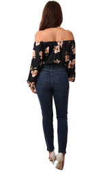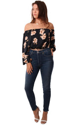 BB Dakota Tops Off The Shoulder Long Flowy Sleeve Cropped Floral Print Blouse