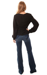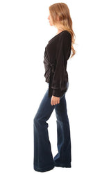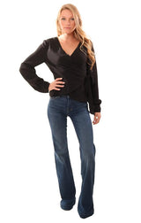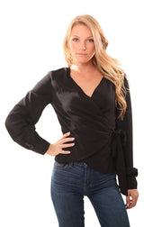 Do And Be Tops Wrap Style Long Sleeve Dressy Black Blouse