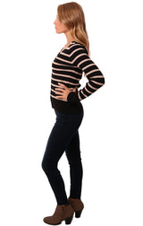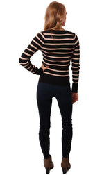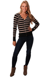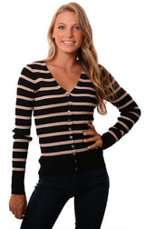 Heartloom Sweaters Long Sleeve V Neck Ribbed Button Up Black Pink Striped Knit Sweater