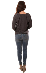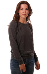 Michael Stars Tops Gathered Long Sleeve Crew Neck Charcoal Sweater Top