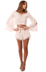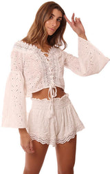Vintage Havana Tops Off The Shoulder Eyelet Lace Bell Sleeve White Blouse