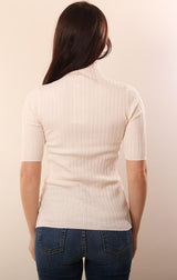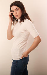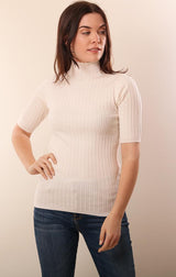 525 Tops Ribbed Fitted Mock Neck Ivory Knit Top