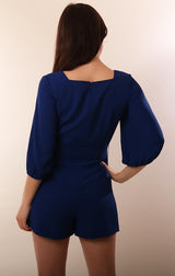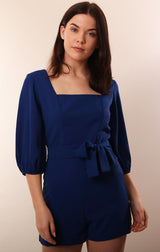 Amanda Uprichard Rompers Square Neck Tie Waist Navy Romper
