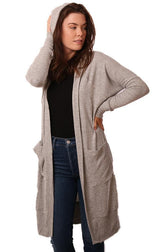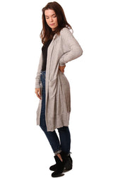LA Made Cardigans Long Sleeve Hooded Open Front Soft Long Grey Cardi
